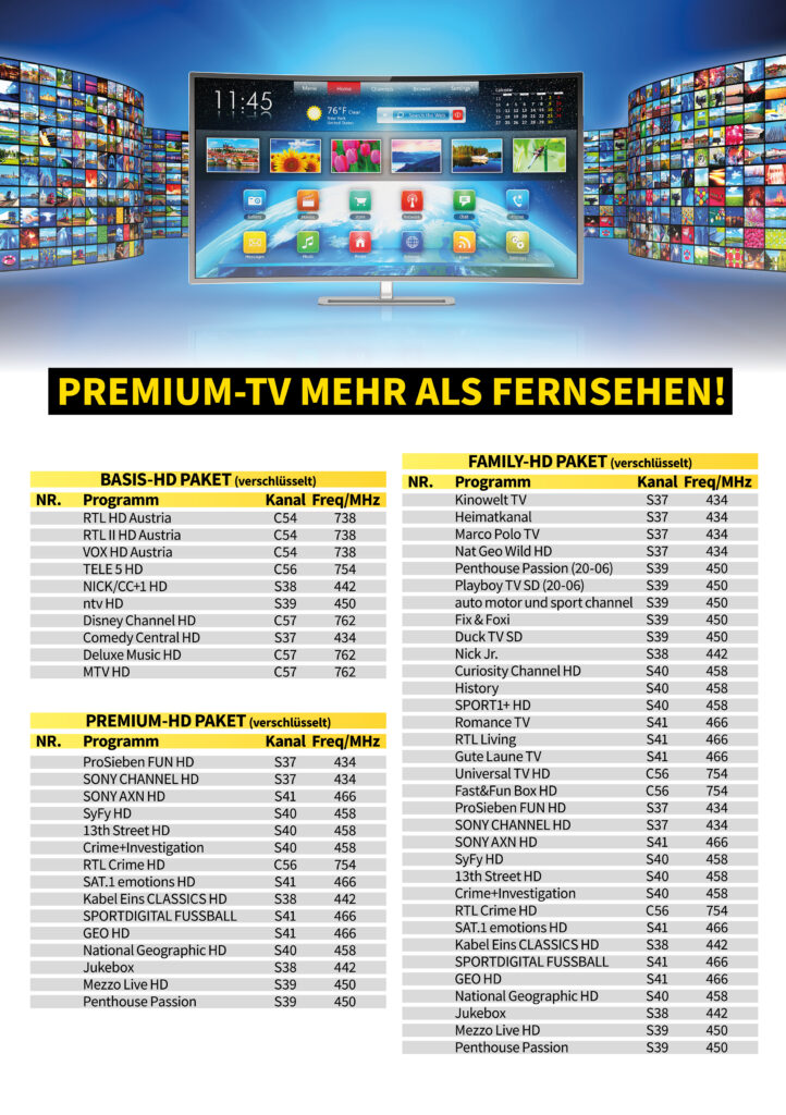- HD-Austria und SKY Programme (gesonderte Anmeldung erforderlich)