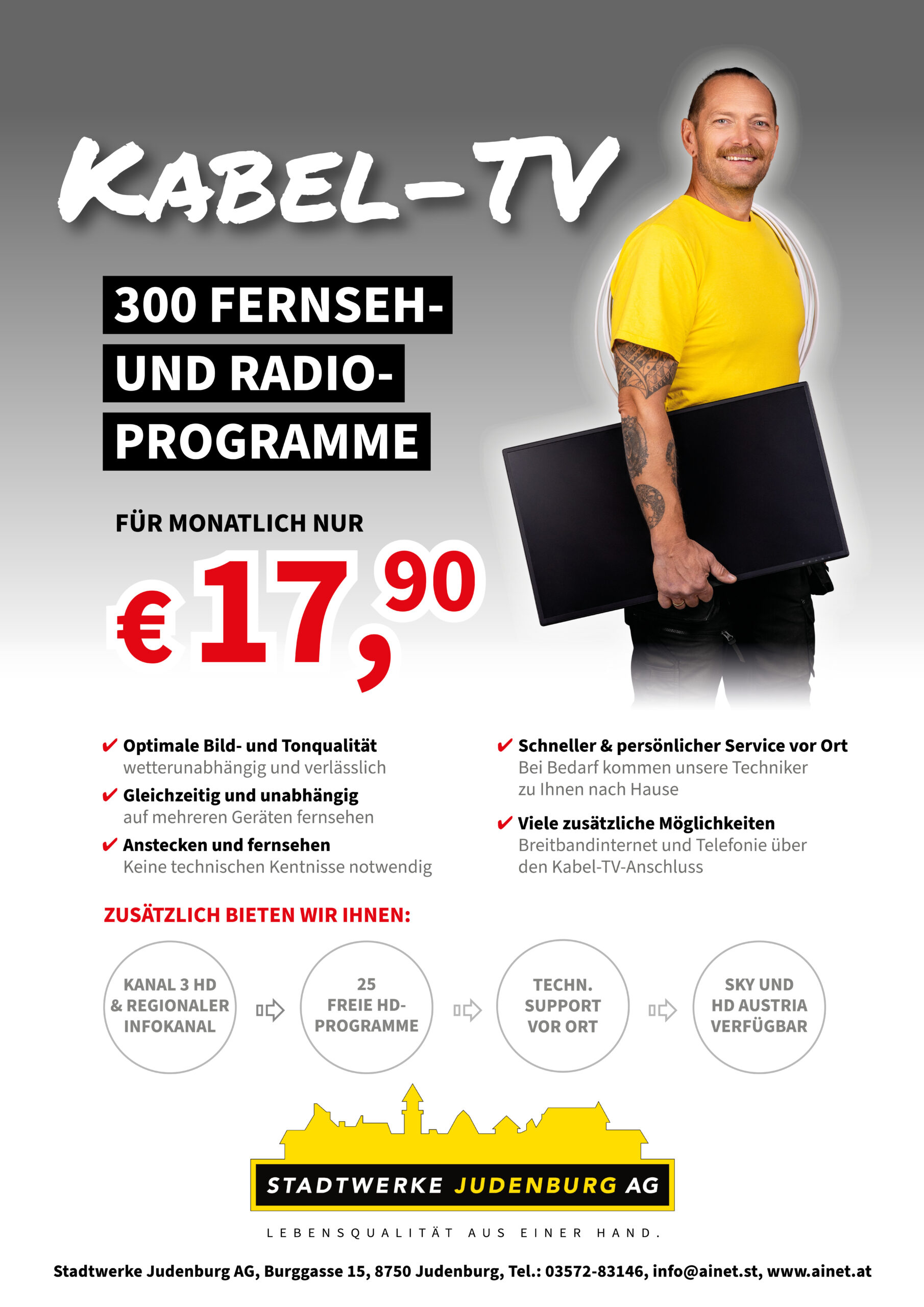 - Viele zusätzliche Möglichkeiten wie Breitband Internet und Telefonie